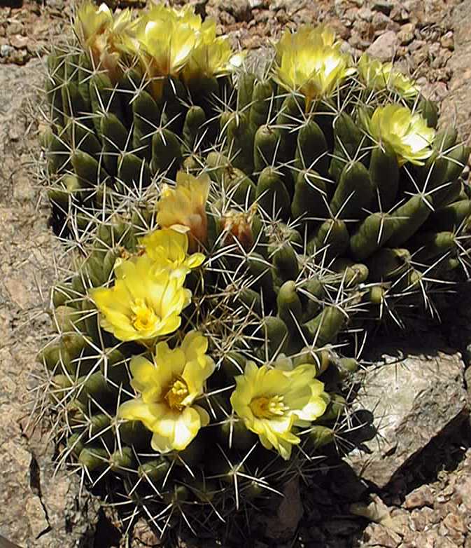 Growth Habits: Solitary or clumping, spherical, green cactus, up to 5 inches in diameter (12 cm)