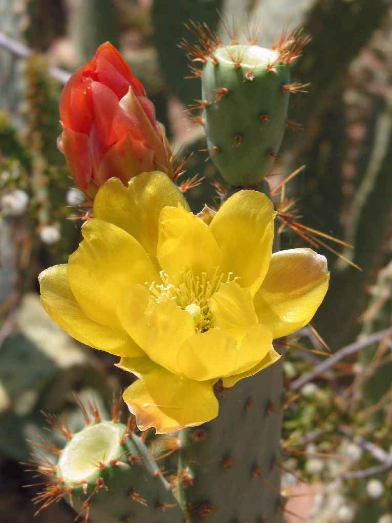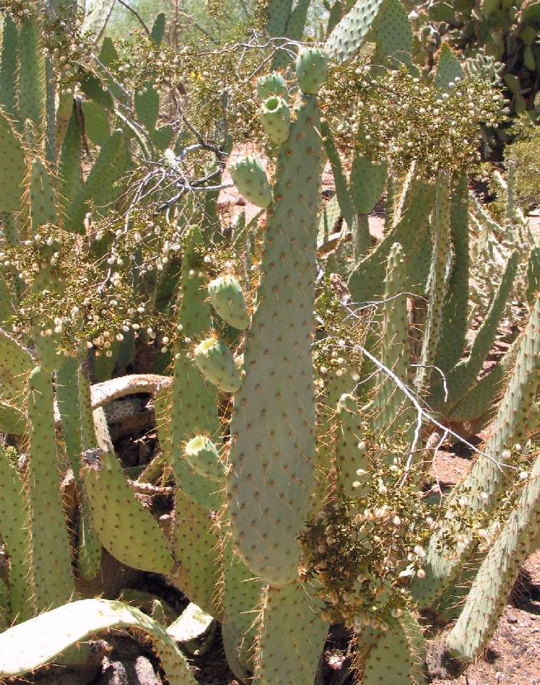 Growth Habits: Prickly pear forming dense clumps, up to 10 feet tall (3 m) or more; gray-green pads