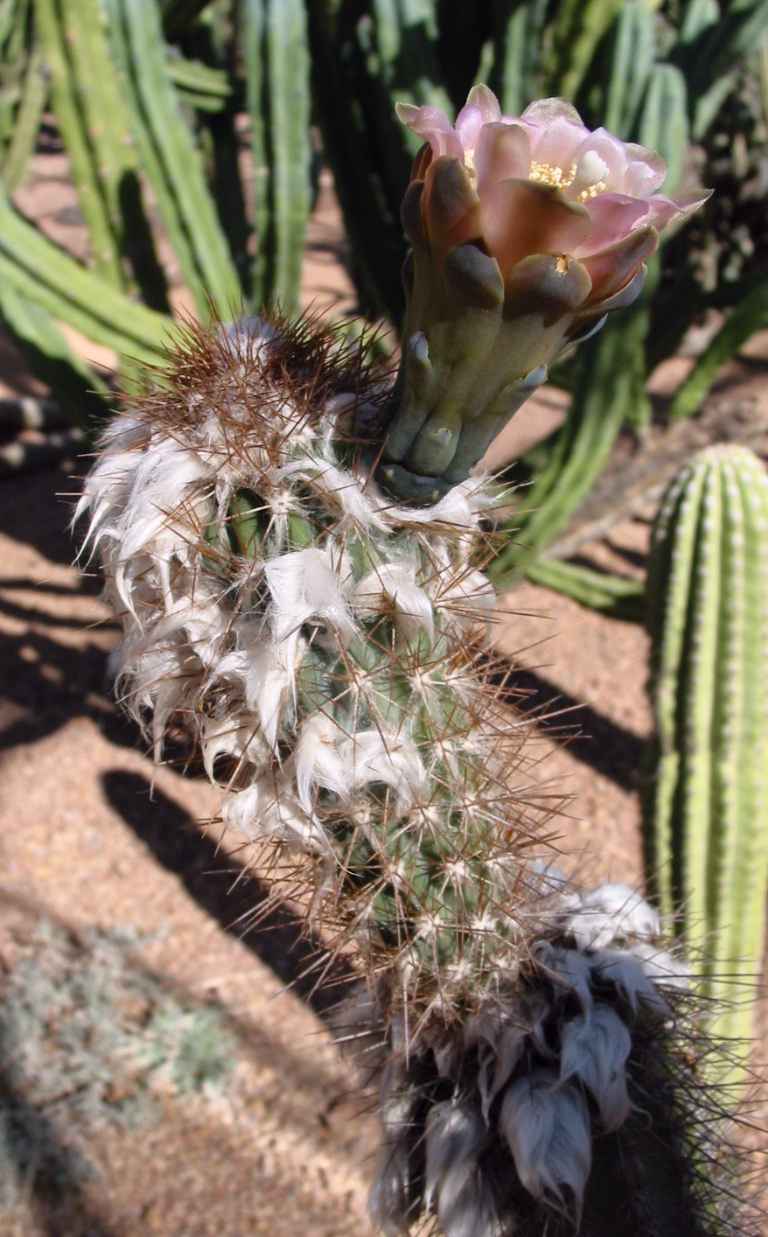 Growth Habits: Tree-like, 15 to 20 feet tall (4.5 to 6 m), branching basally; 12 to 14 ribs, sometimes tuberculate; 10 to 14 yellowish acicular spines, 0.4 to 0.6 inches long (1-1.5 cm);
