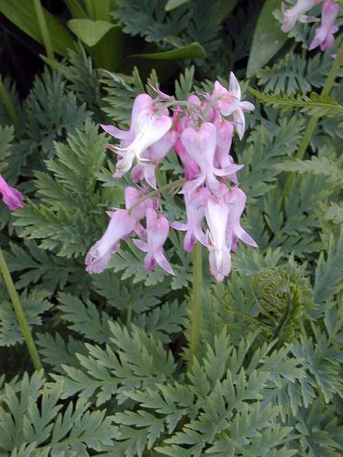 - 'Luxuriant' has bluish green leaves and deep pink, small flowers. It is a hybrid of D. eximia and D. peregrina.